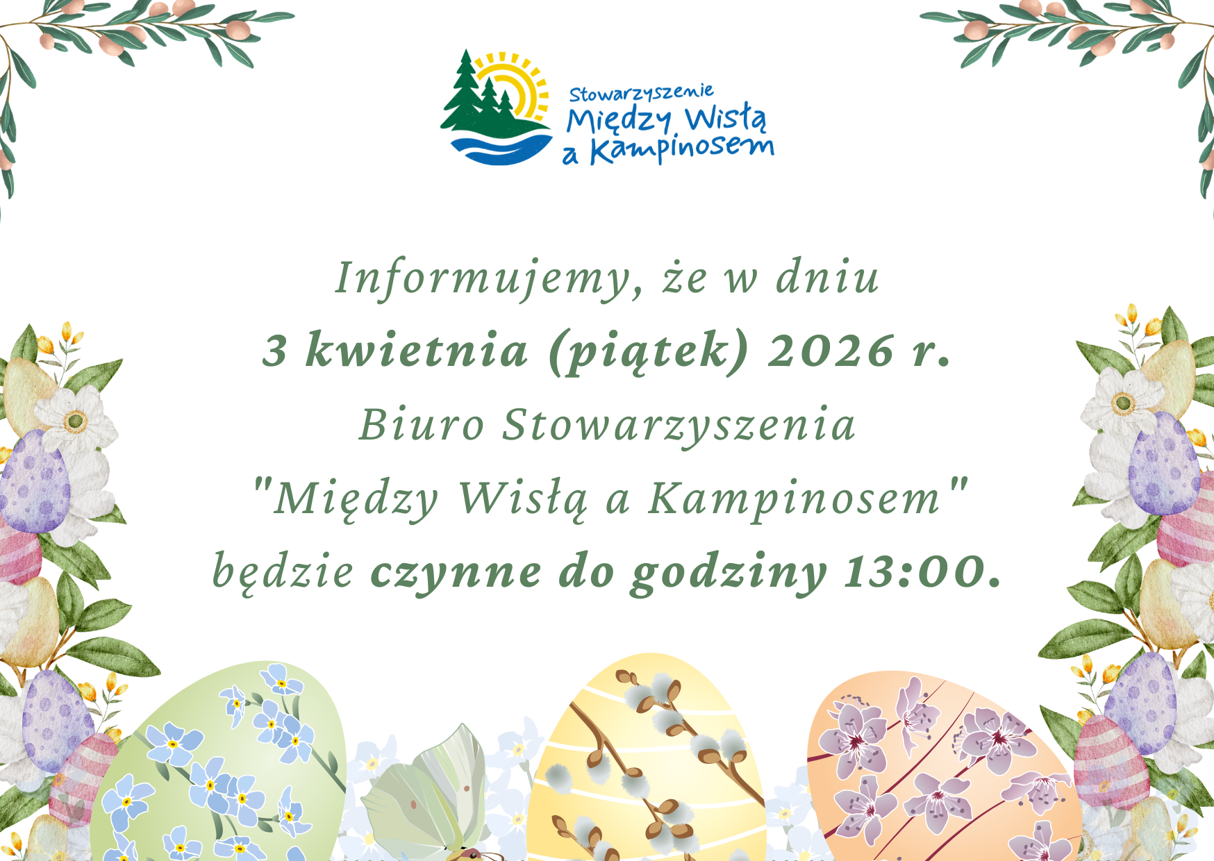 3 kwietnia (Wielki Piątek) nasze biuro będzie czynne tylko do godziny 13:00.